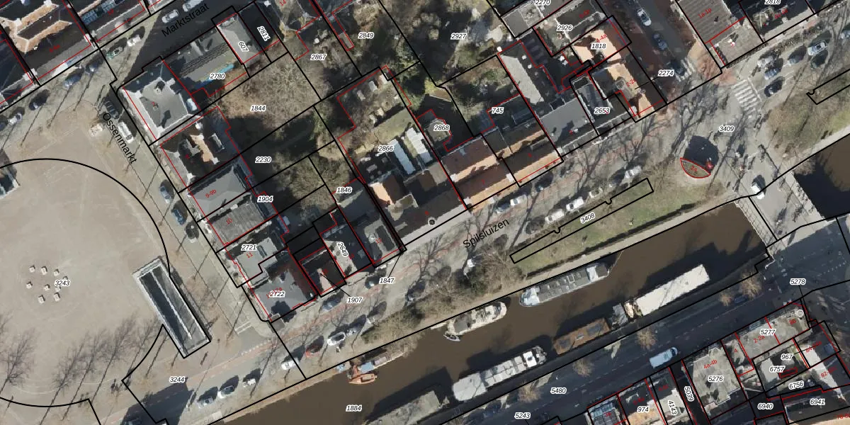 Het perceel waarop Spilsluizen 9-n staat heeft een oppervlakte van 710 m². Dit is een groot perceel. De perceeloppervlakte wordt geregistreerd door het Kadaster. Gedetailleerde informatie over de maten van dit perceel kunt u vinden in het rapport Kadastrale kaart met maatvoering van Spilsluizen 9-n.