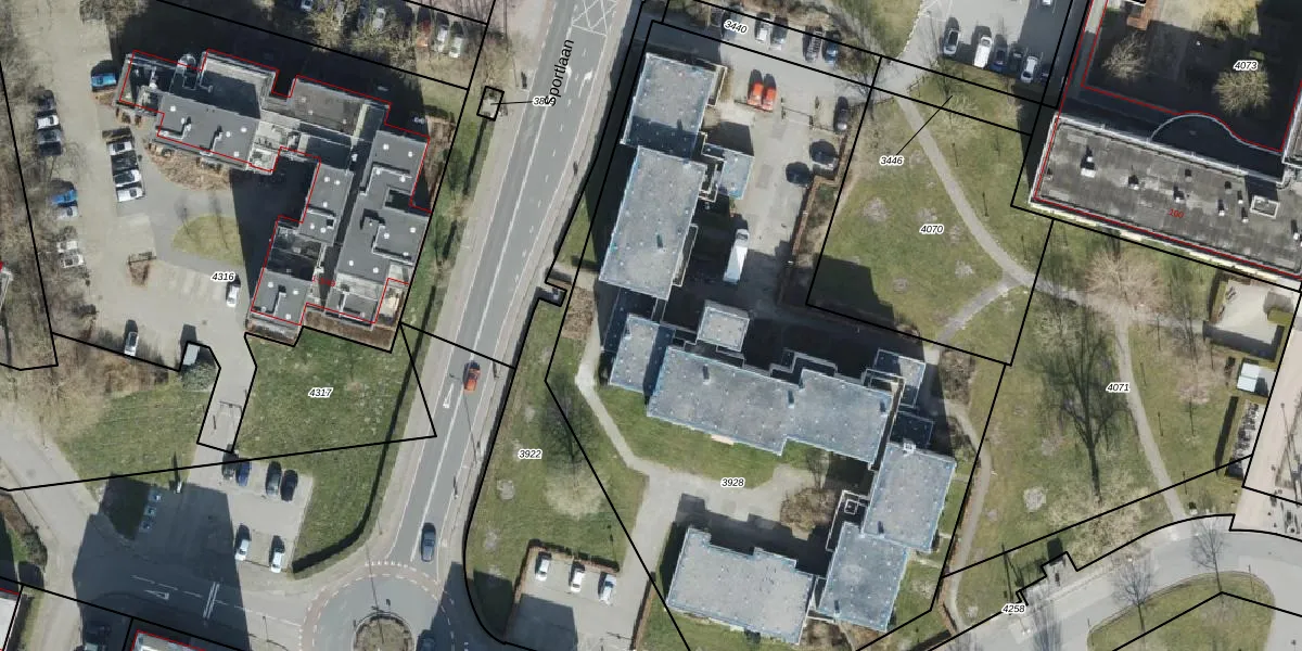 Het perceel waarop Sportlaan 122 staat heeft een oppervlakte van 4374 m². Dit is een zeer groot perceel. De perceeloppervlakte wordt geregistreerd door het Kadaster. Gedetailleerde informatie over de maten van dit perceel kunt u vinden in het rapport Kadastrale kaart met maatvoering van Sportlaan 122.
