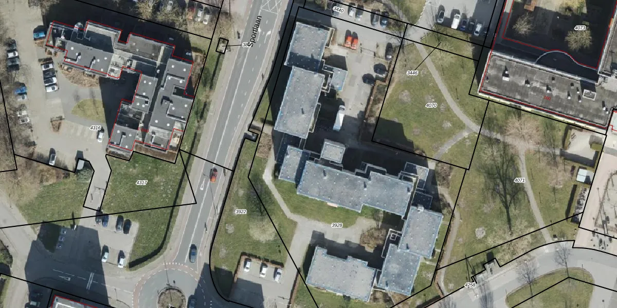 Het perceel waarop Sportlaan 142 staat heeft een oppervlakte van 4374 m². Dit is een zeer groot perceel. De perceeloppervlakte wordt geregistreerd door het Kadaster. Gedetailleerde informatie over de maten van dit perceel kunt u vinden in het rapport Kadastrale kaart met maatvoering van Sportlaan 142.