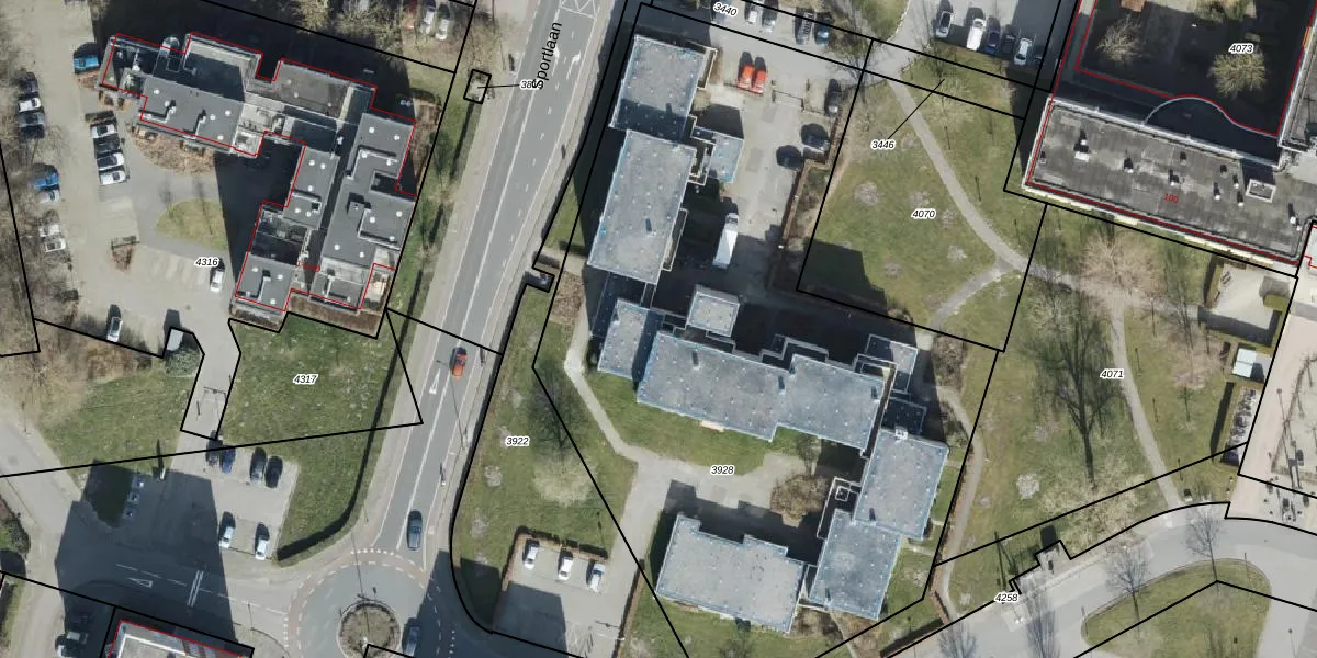Het perceel waarop Sportlaan 144 staat heeft een oppervlakte van 4374 m². Dit is een zeer groot perceel. De perceeloppervlakte wordt geregistreerd door het Kadaster. Gedetailleerde informatie over de maten van dit perceel kunt u vinden in het rapport Kadastrale kaart met maatvoering van Sportlaan 144.