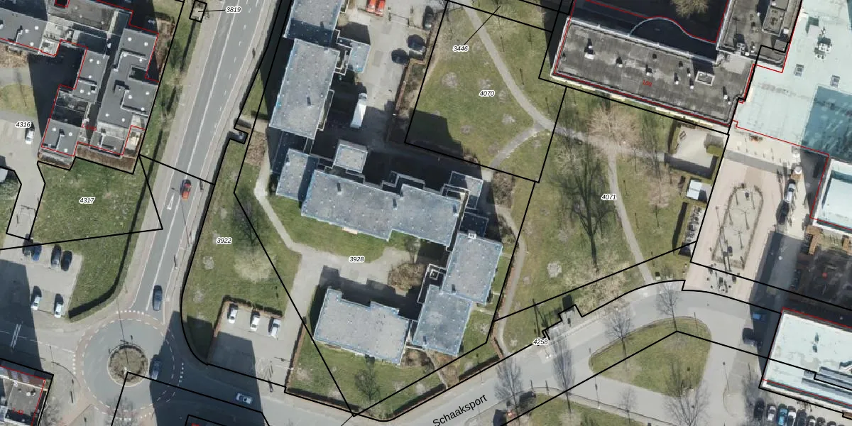 Het perceel waarop Sportlaan 150 staat heeft een oppervlakte van 4374 m². Dit is een zeer groot perceel. De perceeloppervlakte wordt geregistreerd door het Kadaster. Gedetailleerde informatie over de maten van dit perceel kunt u vinden in het rapport Kadastrale kaart met maatvoering van Sportlaan 150.