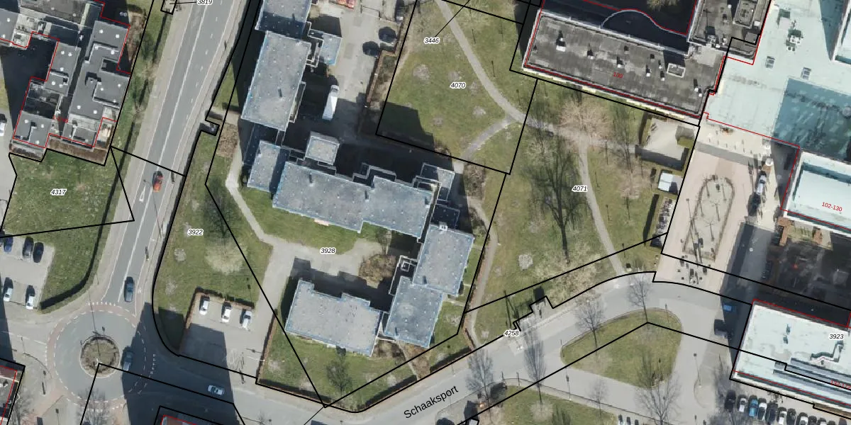 Het perceel waarop Sportlaan 182 staat heeft een oppervlakte van 4374 m². Dit is een zeer groot perceel. De perceeloppervlakte wordt geregistreerd door het Kadaster. Gedetailleerde informatie over de maten van dit perceel kunt u vinden in het rapport Kadastrale kaart met maatvoering van Sportlaan 182.