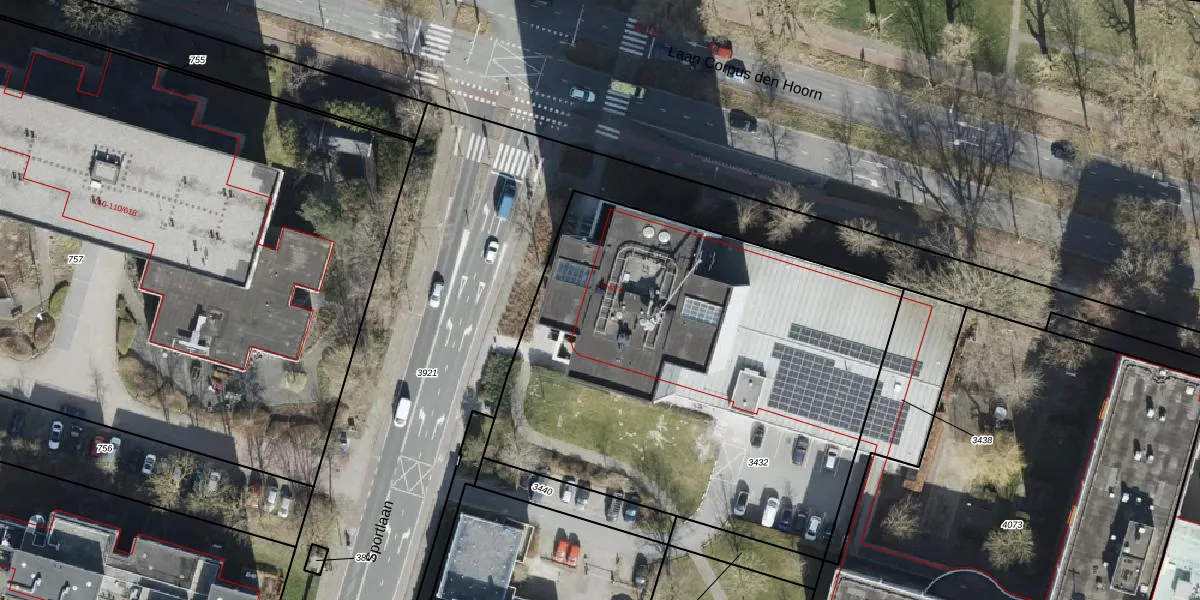 Het perceel waarop Sportlaan 4-3 staat heeft een oppervlakte van 2760 m². Dit is een zeer groot perceel. De perceeloppervlakte wordt geregistreerd door het Kadaster. Gedetailleerde informatie over de maten van dit perceel kunt u vinden in het rapport Kadastrale kaart met maatvoering van Sportlaan 4-3.