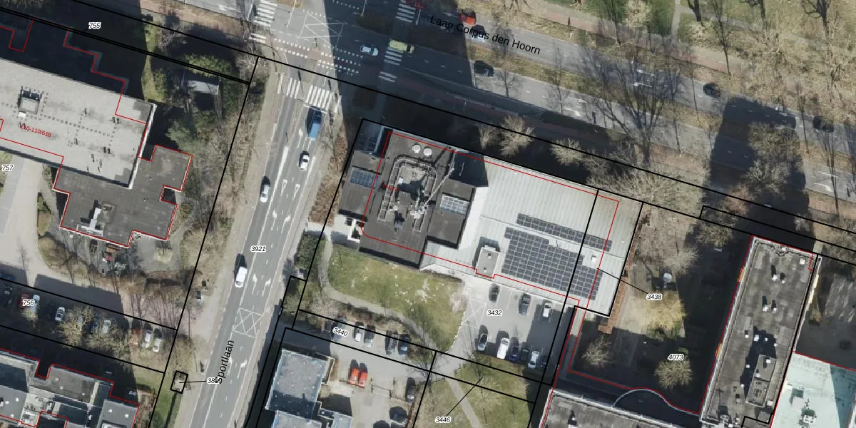 Het perceel waarop Sportlaan 4-45 staat heeft een oppervlakte van 2760 m². Dit is een zeer groot perceel. De perceeloppervlakte wordt geregistreerd door het Kadaster. Gedetailleerde informatie over de maten van dit perceel kunt u vinden in het rapport Kadastrale kaart met maatvoering van Sportlaan 4-45.