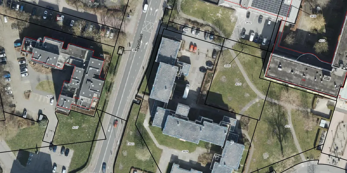Het perceel waarop Sportlaan 66 staat heeft een oppervlakte van 4374 m². Dit is een zeer groot perceel. De perceeloppervlakte wordt geregistreerd door het Kadaster. Gedetailleerde informatie over de maten van dit perceel kunt u vinden in het rapport Kadastrale kaart met maatvoering van Sportlaan 66.