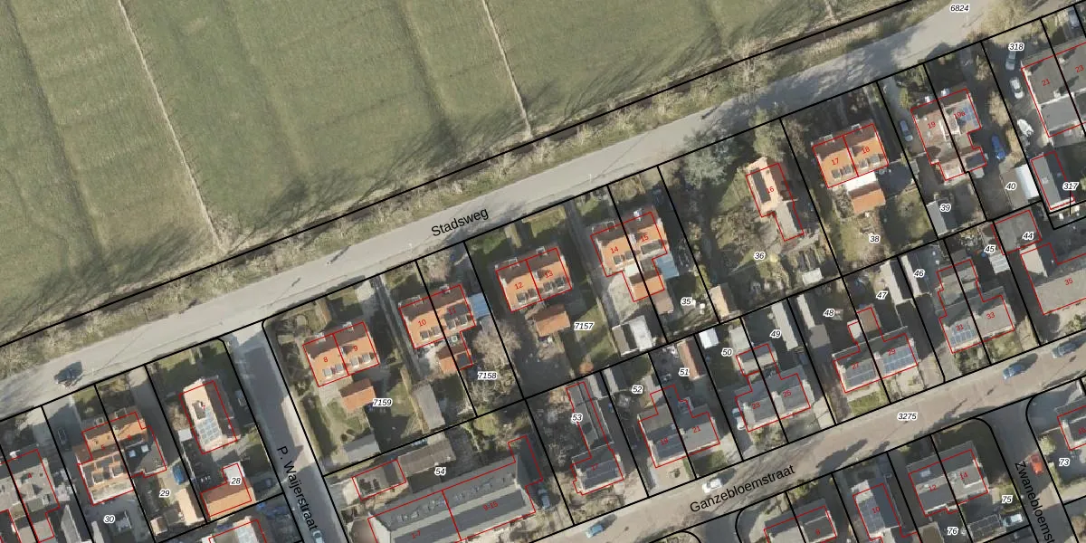 Stadsweg 13 is gelegen op kadastraal perceel GNG01AC7157. Deze kadastrale aanduiding is uniek en wordt gebruikt door het Kadaster om eigendomsrechten en andere zakelijke rechten vast te leggen. Het perceel maakt onderdeel uit van de kadastrale gemeente Groningen.