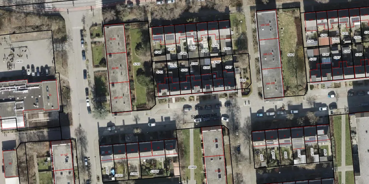 Het perceel waarop Staringstraat 23 staat heeft een oppervlakte van 113 m². Dit is een middelgroot perceel. De perceeloppervlakte wordt geregistreerd door het Kadaster. Gedetailleerde informatie over de maten van dit perceel kunt u vinden in het rapport Kadastrale kaart met maatvoering van Staringstraat 23.