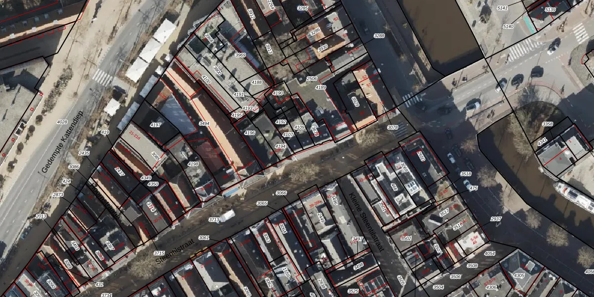 Het perceel waarop Steentilstraat 44 staat heeft een oppervlakte van 65 m². Dit is een klein perceel. De perceeloppervlakte wordt geregistreerd door het Kadaster. Gedetailleerde informatie over de maten van dit perceel kunt u vinden in het rapport Kadastrale kaart met maatvoering van Steentilstraat 44.