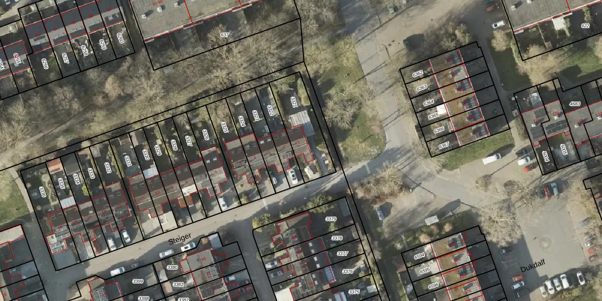 Steiger 1 is gelegen op kadastraal perceel GNG01AC3321. Deze kadastrale aanduiding is uniek en wordt gebruikt door het Kadaster om eigendomsrechten en andere zakelijke rechten vast te leggen. Het perceel maakt onderdeel uit van de kadastrale gemeente Groningen.