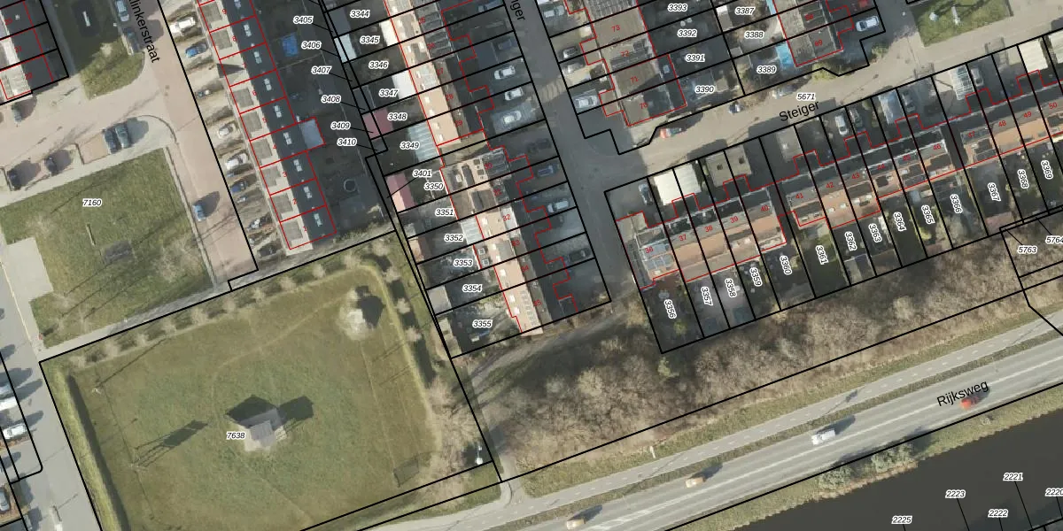 Het perceel waarop Steiger 34 staat heeft een oppervlakte van 164 m². Dit is een middelgroot perceel. De perceeloppervlakte wordt geregistreerd door het Kadaster. Gedetailleerde informatie over de maten van dit perceel kunt u vinden in het rapport Kadastrale kaart met maatvoering van Steiger 34.