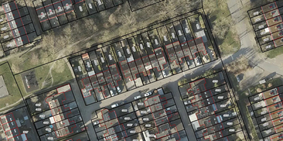 Steiger 9 is gelegen op kadastraal perceel GNG01AC3329. Deze kadastrale aanduiding is uniek en wordt gebruikt door het Kadaster om eigendomsrechten en andere zakelijke rechten vast te leggen. Het perceel maakt onderdeel uit van de kadastrale gemeente Groningen.