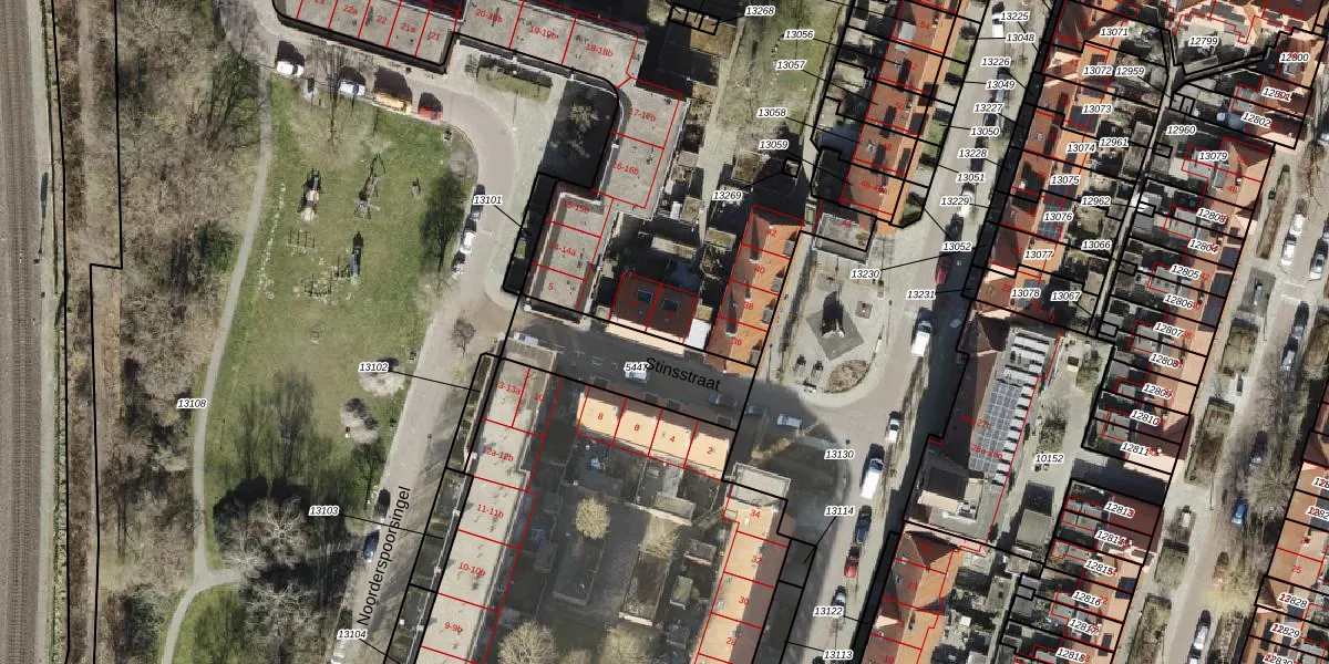 Stinsstraat 1 is gelegen op kadastraal perceel GNG00A13265. Deze kadastrale aanduiding is uniek en wordt gebruikt door het Kadaster om eigendomsrechten en andere zakelijke rechten vast te leggen. Het perceel maakt onderdeel uit van de kadastrale gemeente Groningen.