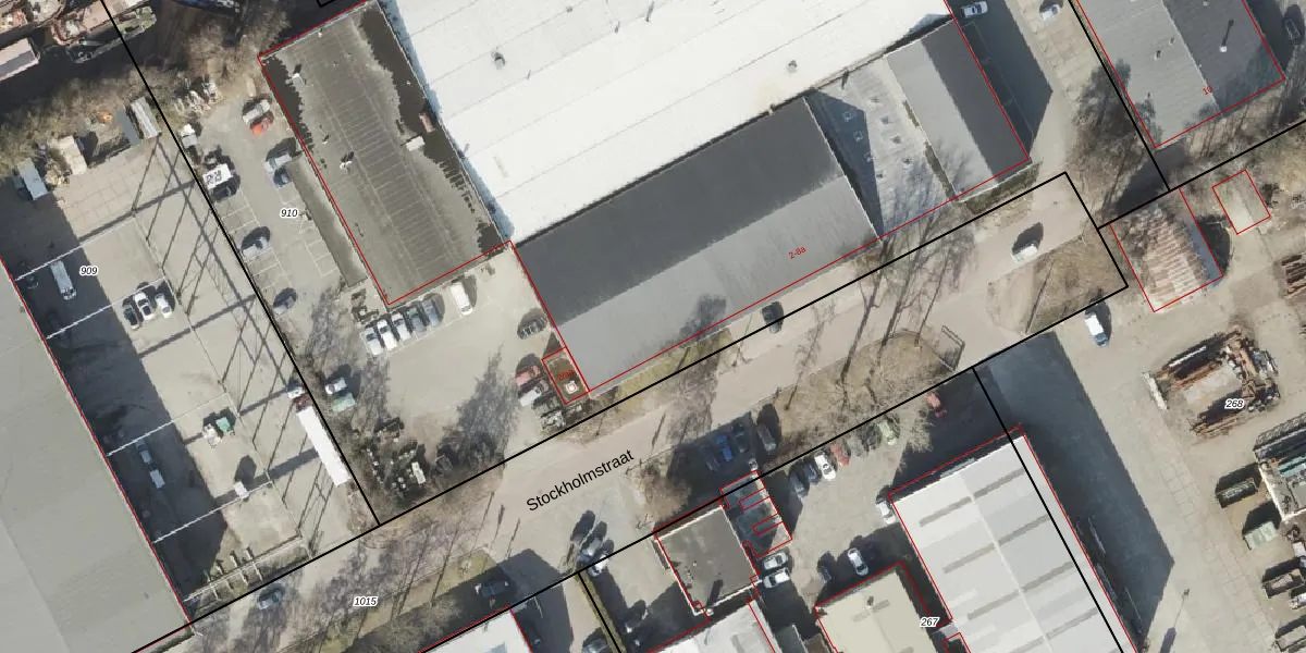Het perceel waarop Stockholmstraat 2 staat heeft een oppervlakte van 1,1 ha. Dit is een zeer groot perceel. De perceeloppervlakte wordt geregistreerd door het Kadaster. Gedetailleerde informatie over de maten van dit perceel kunt u vinden in het rapport Kadastrale kaart met maatvoering van Stockholmstraat 2.