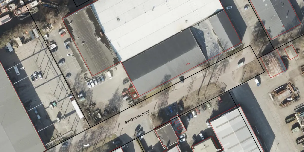 Het perceel waarop Stockholmstraat 2-b staat heeft een oppervlakte van 1,1 ha. Dit is een zeer groot perceel. De perceeloppervlakte wordt geregistreerd door het Kadaster. Gedetailleerde informatie over de maten van dit perceel kunt u vinden in het rapport Kadastrale kaart met maatvoering van Stockholmstraat 2-b.