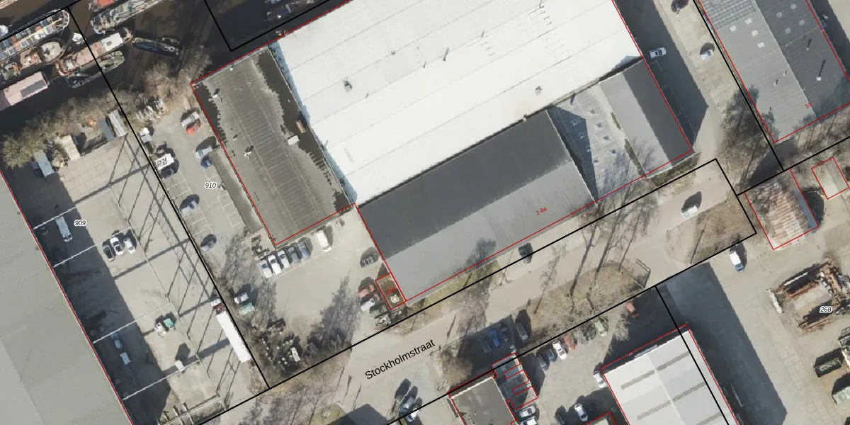Het perceel waarop Stockholmstraat 2-f staat heeft een oppervlakte van 1,1 ha. Dit is een zeer groot perceel. De perceeloppervlakte wordt geregistreerd door het Kadaster. Gedetailleerde informatie over de maten van dit perceel kunt u vinden in het rapport Kadastrale kaart met maatvoering van Stockholmstraat 2-f.