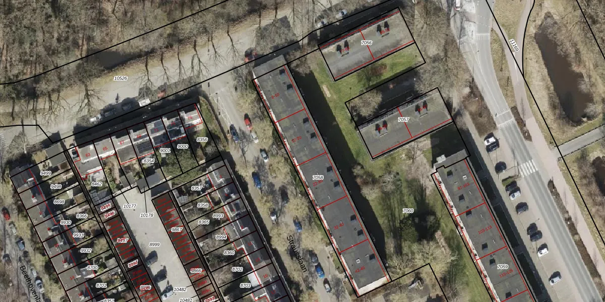 Het perceel waarop Strausslaan 20 staat heeft een oppervlakte van 995 m². Dit is een groot perceel. De perceeloppervlakte wordt geregistreerd door het Kadaster. Gedetailleerde informatie over de maten van dit perceel kunt u vinden in het rapport Kadastrale kaart met maatvoering van Strausslaan 20.