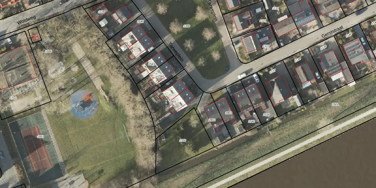 Het perceel waarop Tarweplein 14 staat heeft een oppervlakte van 590 m². Dit is een groot perceel. De perceeloppervlakte wordt geregistreerd door het Kadaster. Gedetailleerde informatie over de maten van dit perceel kunt u vinden in het rapport Kadastrale kaart met maatvoering van Tarweplein 14.