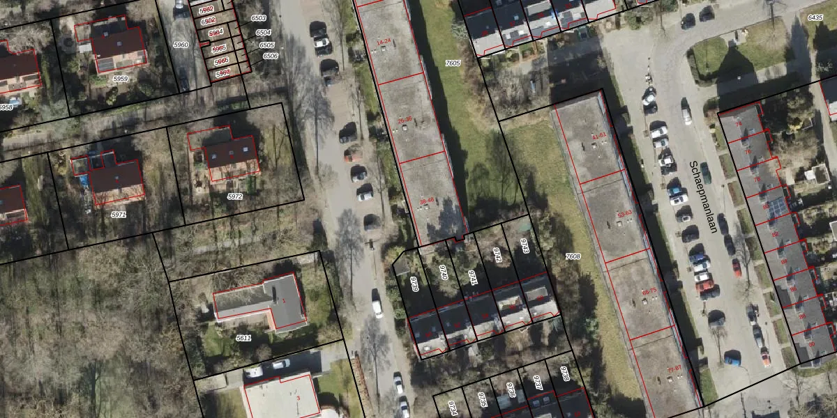 Het perceel waarop Thorbeckelaan 40 staat heeft een oppervlakte van 2005 m². Dit is een zeer groot perceel. De perceeloppervlakte wordt geregistreerd door het Kadaster. Gedetailleerde informatie over de maten van dit perceel kunt u vinden in het rapport Kadastrale kaart met maatvoering van Thorbeckelaan 40.