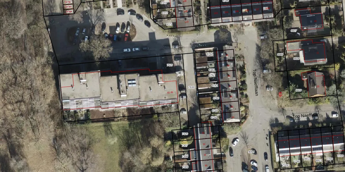Het perceel waarop Top Naefflaan 41 staat heeft een oppervlakte van 2455 m². Dit is een zeer groot perceel. De perceeloppervlakte wordt geregistreerd door het Kadaster. Gedetailleerde informatie over de maten van dit perceel kunt u vinden in het rapport Kadastrale kaart met maatvoering van Top Naefflaan 41.