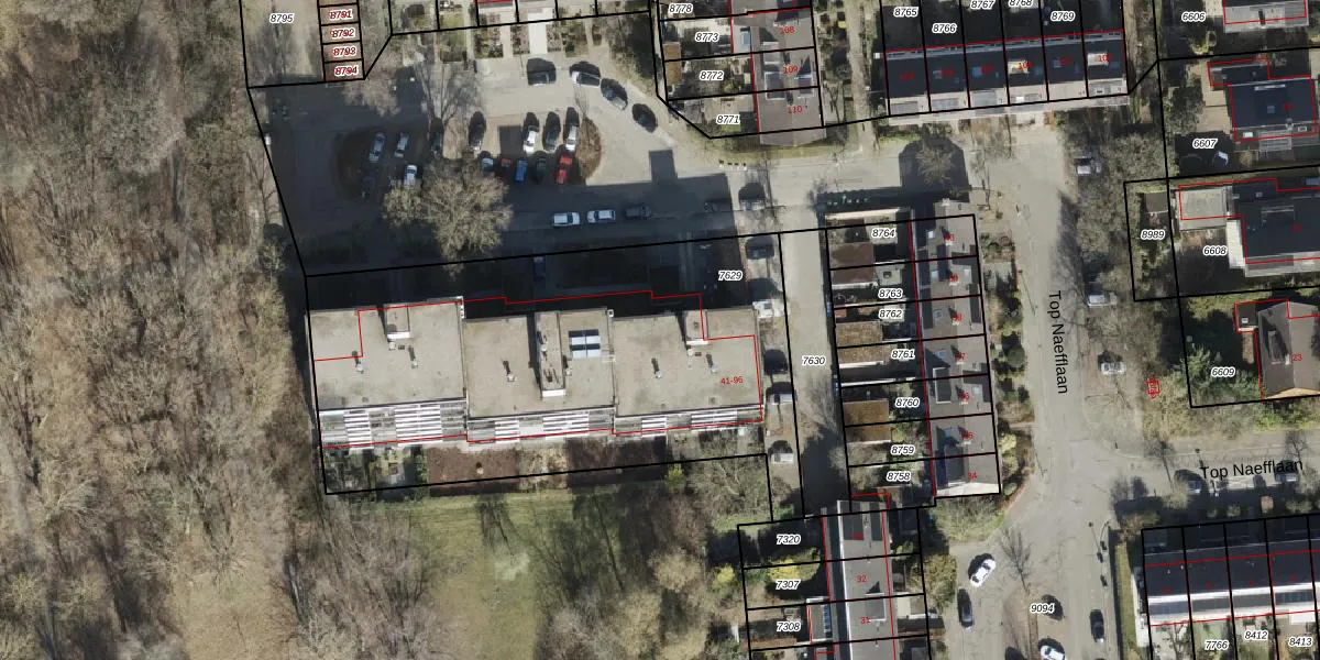 Het perceel waarop Top Naefflaan 48 staat heeft een oppervlakte van 2455 m². Dit is een zeer groot perceel. De perceeloppervlakte wordt geregistreerd door het Kadaster. Gedetailleerde informatie over de maten van dit perceel kunt u vinden in het rapport Kadastrale kaart met maatvoering van Top Naefflaan 48.