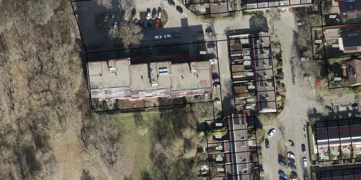 Het perceel waarop Top Naefflaan 66 staat heeft een oppervlakte van 2455 m². Dit is een zeer groot perceel. De perceeloppervlakte wordt geregistreerd door het Kadaster. Gedetailleerde informatie over de maten van dit perceel kunt u vinden in het rapport Kadastrale kaart met maatvoering van Top Naefflaan 66.