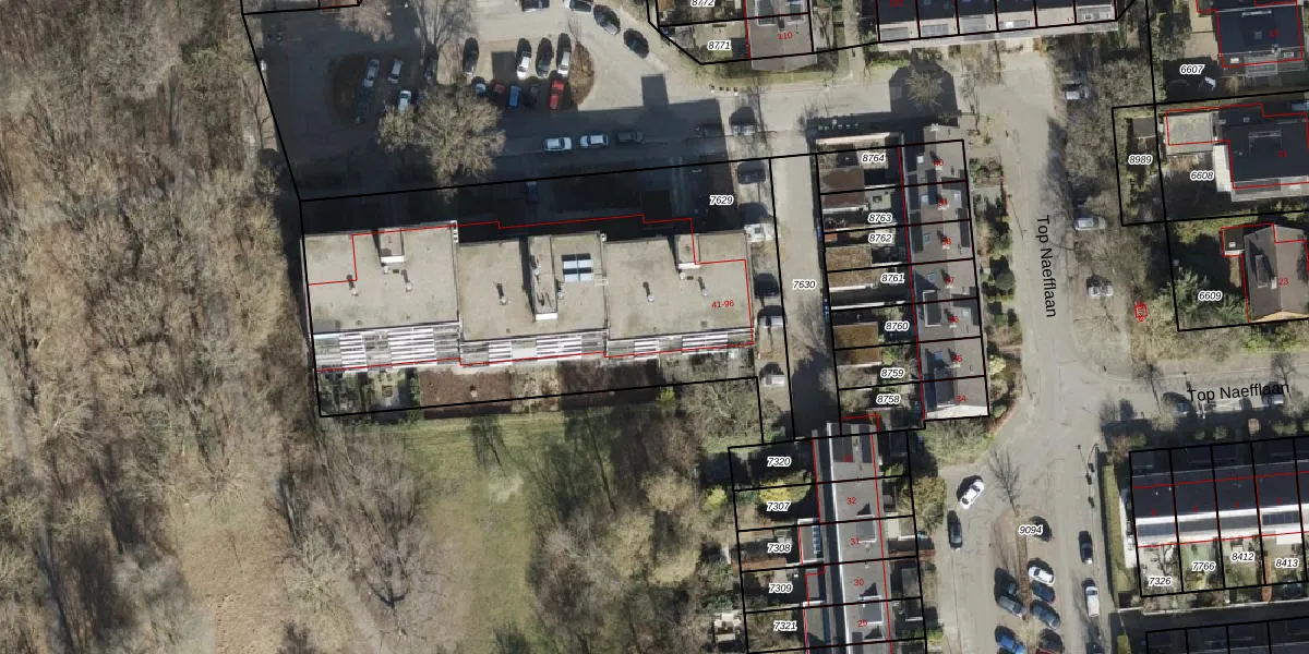 Het perceel waarop Top Naefflaan 70 staat heeft een oppervlakte van 2455 m². Dit is een zeer groot perceel. De perceeloppervlakte wordt geregistreerd door het Kadaster. Gedetailleerde informatie over de maten van dit perceel kunt u vinden in het rapport Kadastrale kaart met maatvoering van Top Naefflaan 70.
