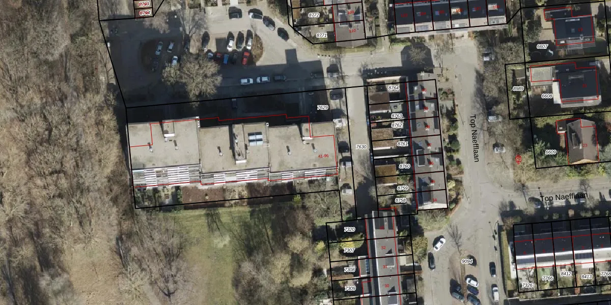 Het perceel waarop Top Naefflaan 77 staat heeft een oppervlakte van 2455 m². Dit is een zeer groot perceel. De perceeloppervlakte wordt geregistreerd door het Kadaster. Gedetailleerde informatie over de maten van dit perceel kunt u vinden in het rapport Kadastrale kaart met maatvoering van Top Naefflaan 77.