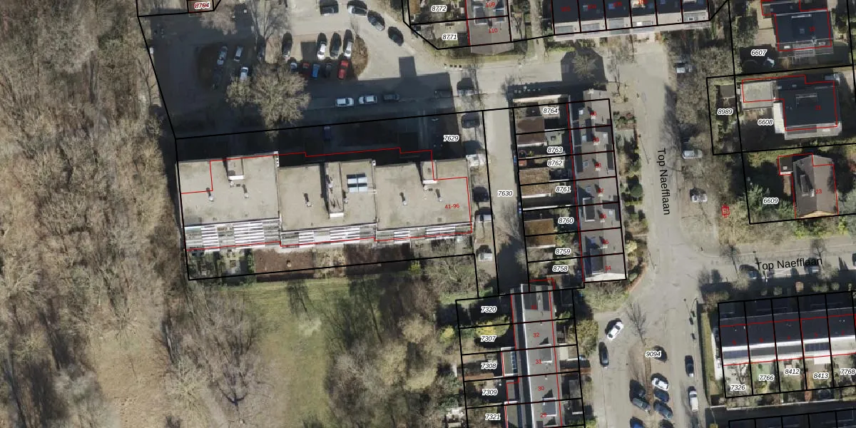 Het perceel waarop Top Naefflaan 79 staat heeft een oppervlakte van 2455 m². Dit is een zeer groot perceel. De perceeloppervlakte wordt geregistreerd door het Kadaster. Gedetailleerde informatie over de maten van dit perceel kunt u vinden in het rapport Kadastrale kaart met maatvoering van Top Naefflaan 79.
