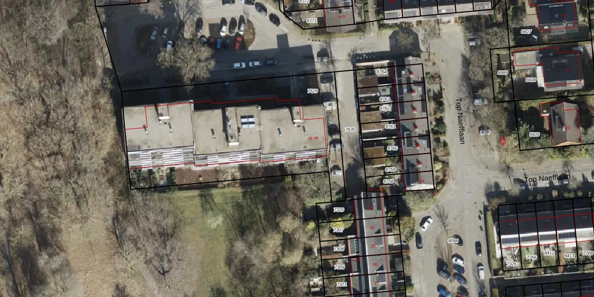 Het perceel waarop Top Naefflaan 80 staat heeft een oppervlakte van 2455 m². Dit is een zeer groot perceel. De perceeloppervlakte wordt geregistreerd door het Kadaster. Gedetailleerde informatie over de maten van dit perceel kunt u vinden in het rapport Kadastrale kaart met maatvoering van Top Naefflaan 80.
