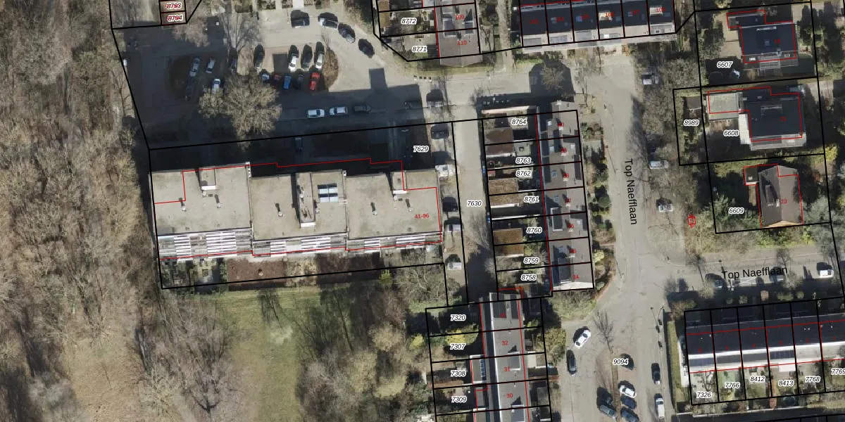 Het perceel waarop Top Naefflaan 87 staat heeft een oppervlakte van 2455 m². Dit is een zeer groot perceel. De perceeloppervlakte wordt geregistreerd door het Kadaster. Gedetailleerde informatie over de maten van dit perceel kunt u vinden in het rapport Kadastrale kaart met maatvoering van Top Naefflaan 87.