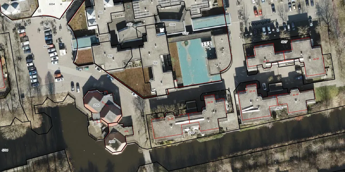 Toppingaheerd 2 is gelegen op kadastraal perceel GNG01AB930. Deze kadastrale aanduiding is uniek en wordt gebruikt door het Kadaster om eigendomsrechten en andere zakelijke rechten vast te leggen. Het perceel maakt onderdeel uit van de kadastrale gemeente Groningen.