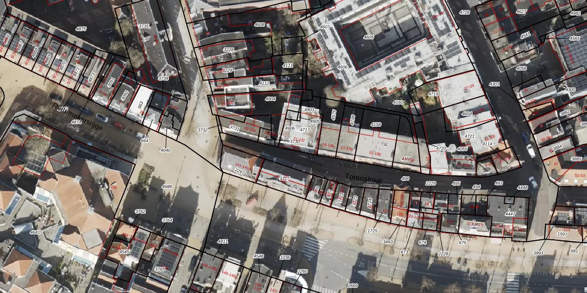 Het perceel waarop Torenstraat 21 staat heeft een oppervlakte van 185 m². Dit is een middelgroot perceel. De perceeloppervlakte wordt geregistreerd door het Kadaster. Gedetailleerde informatie over de maten van dit perceel kunt u vinden in het rapport Kadastrale kaart met maatvoering van Torenstraat 21.