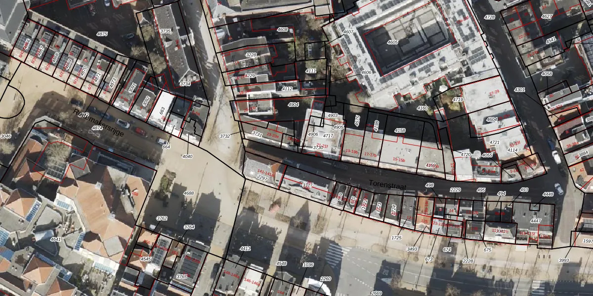 Het perceel waarop Torenstraat 23-a staat heeft een oppervlakte van 22 m². Dit is een klein perceel. De perceeloppervlakte wordt geregistreerd door het Kadaster. Gedetailleerde informatie over de maten van dit perceel kunt u vinden in het rapport Kadastrale kaart met maatvoering van Torenstraat 23-a.