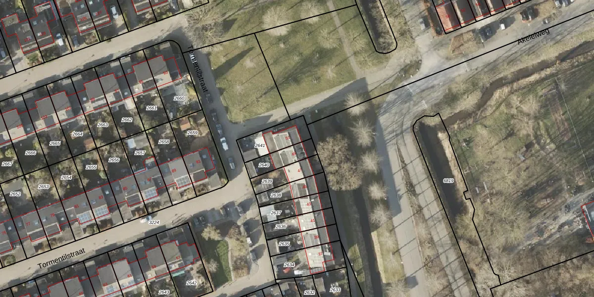 Tormentilstraat 49 is gelegen op kadastraal perceel GNG01AC2640. Deze kadastrale aanduiding is uniek en wordt gebruikt door het Kadaster om eigendomsrechten en andere zakelijke rechten vast te leggen. Het perceel maakt onderdeel uit van de kadastrale gemeente Groningen.