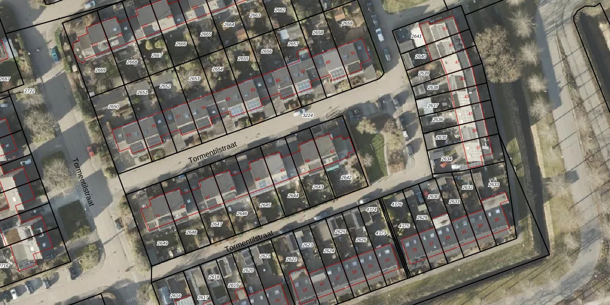 Tormentilstraat 59 is gelegen op kadastraal perceel GNG01AC2643. Deze kadastrale aanduiding is uniek en wordt gebruikt door het Kadaster om eigendomsrechten en andere zakelijke rechten vast te leggen. Het perceel maakt onderdeel uit van de kadastrale gemeente Groningen.