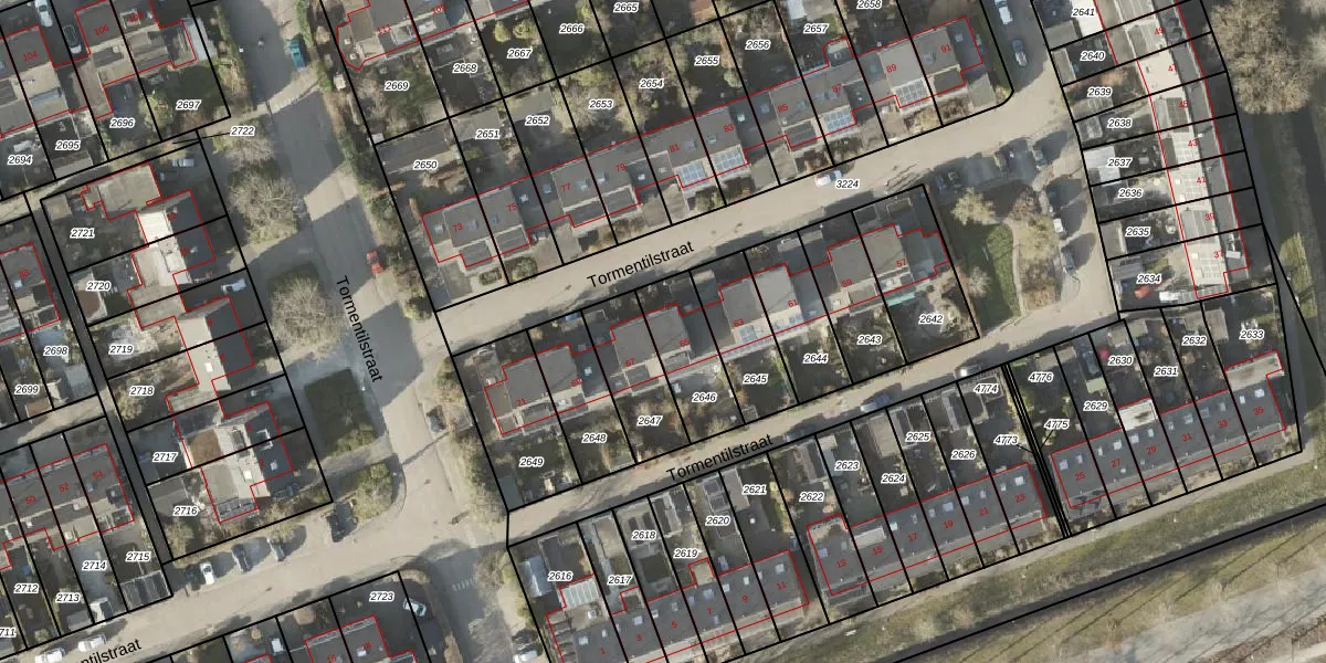 Tormentilstraat 65 is gelegen op kadastraal perceel GNG01AC2646. Deze kadastrale aanduiding is uniek en wordt gebruikt door het Kadaster om eigendomsrechten en andere zakelijke rechten vast te leggen. Het perceel maakt onderdeel uit van de kadastrale gemeente Groningen.