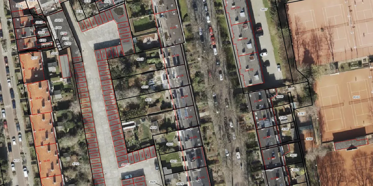 Het perceel waarop Troelstralaan 19 staat heeft een oppervlakte van 452 m². Dit is een groot perceel. De perceeloppervlakte wordt geregistreerd door het Kadaster. Gedetailleerde informatie over de maten van dit perceel kunt u vinden in het rapport Kadastrale kaart met maatvoering van Troelstralaan 19.