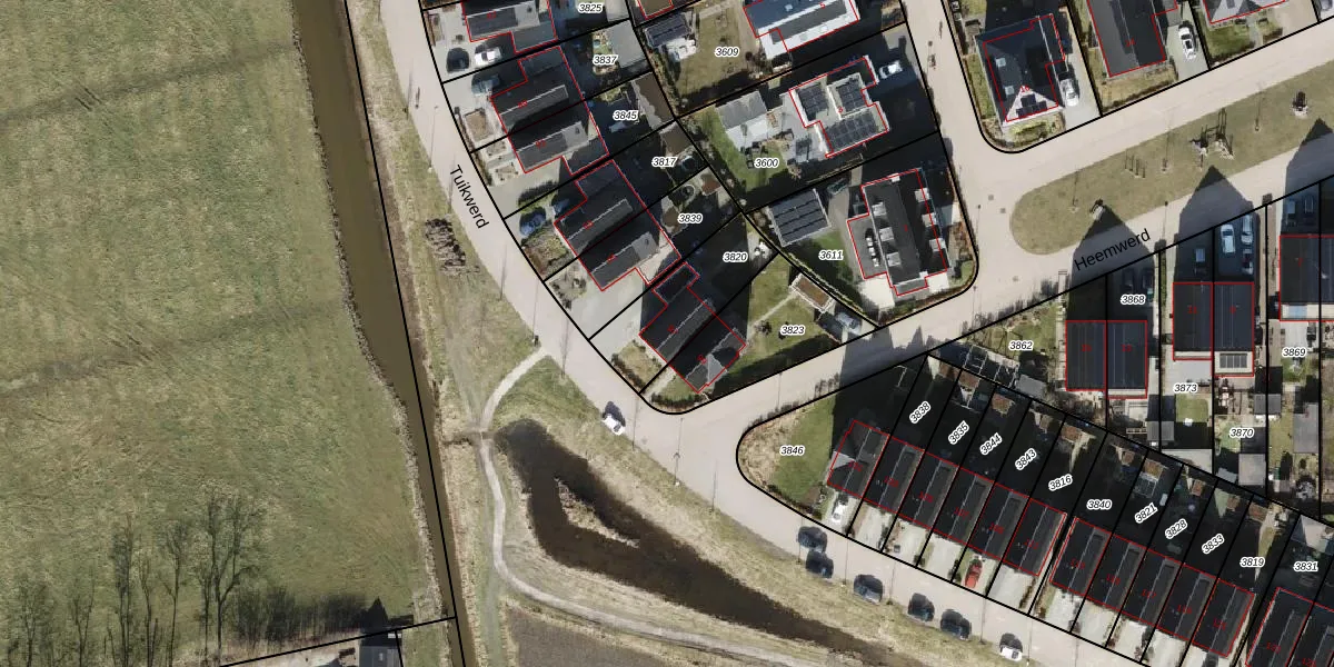 Het perceel waarop Tuikwerd 97 staat heeft een oppervlakte van 292 m². Dit is een middelgroot perceel. De perceeloppervlakte wordt geregistreerd door het Kadaster. Gedetailleerde informatie over de maten van dit perceel kunt u vinden in het rapport Kadastrale kaart met maatvoering van Tuikwerd 97.