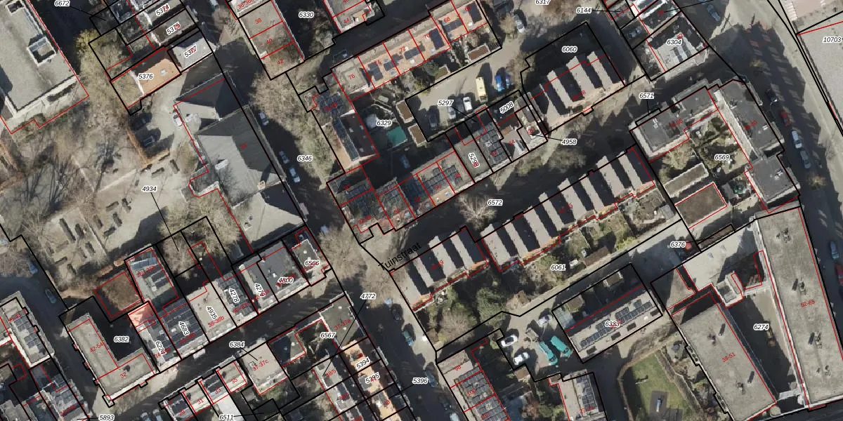 Tuinstraat 54 is gelegen op kadastraal perceel GNG00G6329. Deze kadastrale aanduiding is uniek en wordt gebruikt door het Kadaster om eigendomsrechten en andere zakelijke rechten vast te leggen. Het perceel maakt onderdeel uit van de kadastrale gemeente Groningen.