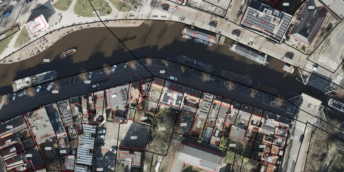 Het perceel waarop Turfsingel 25-a staat heeft een oppervlakte van 531 m². Dit is een groot perceel. De perceeloppervlakte wordt geregistreerd door het Kadaster. Gedetailleerde informatie over de maten van dit perceel kunt u vinden in het rapport Kadastrale kaart met maatvoering van Turfsingel 25-a.