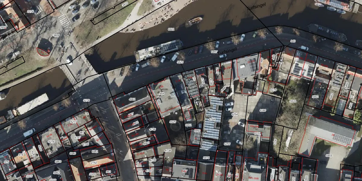 Turfsingel 5-b is gelegen op kadastraal perceel GNG00G6951. Deze kadastrale aanduiding is uniek en wordt gebruikt door het Kadaster om eigendomsrechten en andere zakelijke rechten vast te leggen. Het perceel maakt onderdeel uit van de kadastrale gemeente Groningen.