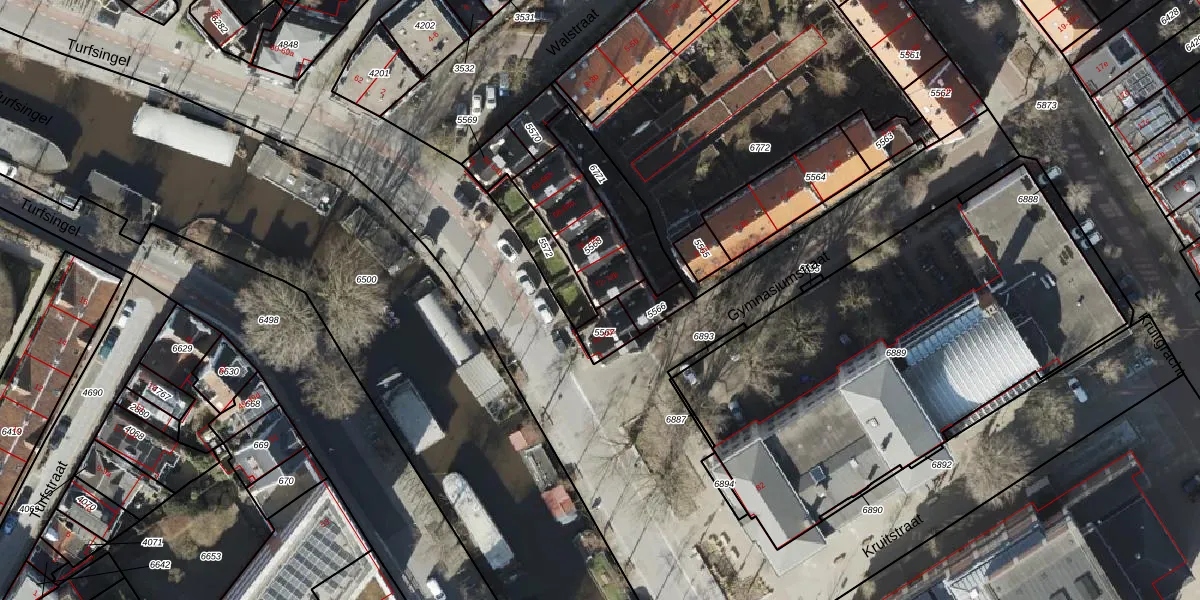 Turfsingel 72-b is gelegen op kadastraal perceel GNG00G5568. Deze kadastrale aanduiding is uniek en wordt gebruikt door het Kadaster om eigendomsrechten en andere zakelijke rechten vast te leggen. Het perceel maakt onderdeel uit van de kadastrale gemeente Groningen.