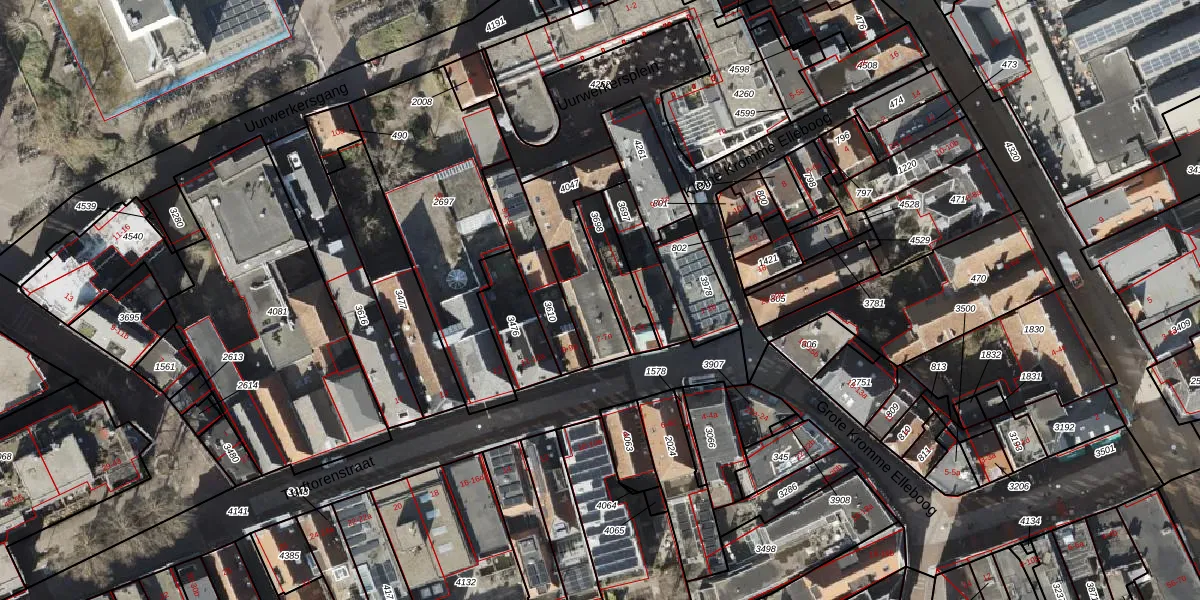Het adres is gelegen op perceel 4047 in de sectie K en de kadastrale gemeente Groningen. De kadastrale aanduiding is aldus GNG00-K-4047. De gemiddelde perceelgrootte in Groningen is 770,65 m². Dit perceel is kleiner: de perceeloppervlakte bedraagt 292 m². Het grootste perceel in de kadastrale gemeente is 31,8 ha. Het kleinste perceel heeft een oppervlakte van 0 m². Er zijn 12 adressen aanwezig op het perceel. In de Basisregistratie Kadaster (BRK) werden de grenzen van het perceel geregistreerd op 20-06-2003.
