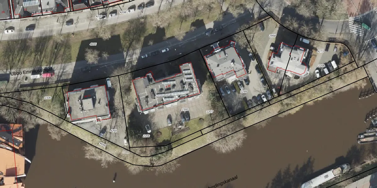 Ubbo Emmiussingel 4-ad is gelegen op kadastraal perceel GNG00I2300. Deze kadastrale aanduiding is uniek en wordt gebruikt door het Kadaster om eigendomsrechten en andere zakelijke rechten vast te leggen. Het perceel maakt onderdeel uit van de kadastrale gemeente Groningen.