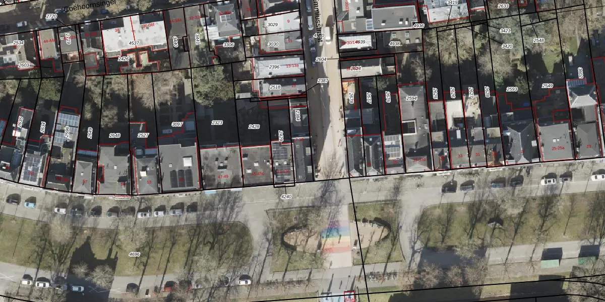 Het adres is gelegen op perceel 2384 in de sectie I en de kadastrale gemeente Groningen. De kadastrale aanduiding is aldus GNG00-I-2384. De gemiddelde perceelgrootte in Groningen is 770,65 m². Dit perceel is kleiner: de perceeloppervlakte bedraagt 169 m². De grootste perceeloppervlakte in de kadastrale gemeente is 31,8 ha. De kleinste oppervlakte bedraagt 0 m². Er zijn 7 adressen aanwezig op het perceel. In de Basisregistratie Kadaster (BRK) werden de grenzen van het perceel geregistreerd op 02-07-2003.