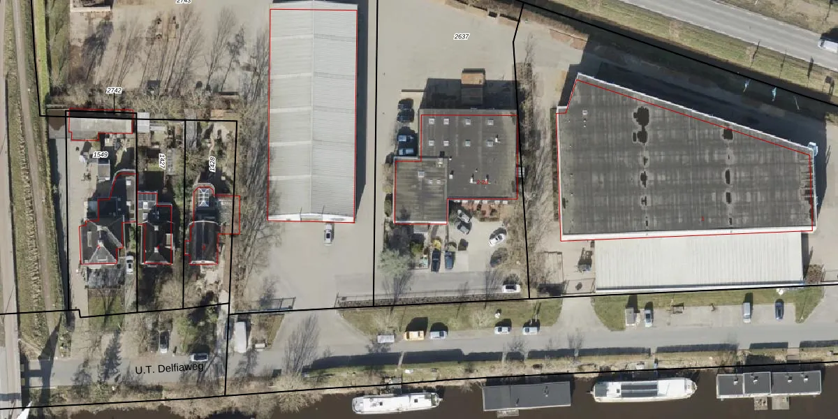 Het perceel waarop U.T. Delfiaweg 2 staat heeft een oppervlakte van 2745 m². Dit is een zeer groot perceel. De perceeloppervlakte wordt geregistreerd door het Kadaster. Gedetailleerde informatie over de maten van dit perceel kunt u vinden in het rapport Kadastrale kaart met maatvoering van U.T. Delfiaweg 2.