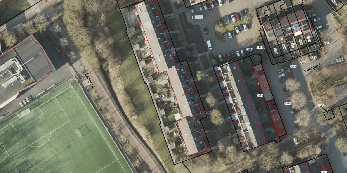 Vaargeul 184 is gelegen op kadastraal perceel GNG01AC1244. Deze kadastrale aanduiding is uniek en wordt gebruikt door het Kadaster om eigendomsrechten en andere zakelijke rechten vast te leggen. Het perceel maakt onderdeel uit van de kadastrale gemeente Groningen.