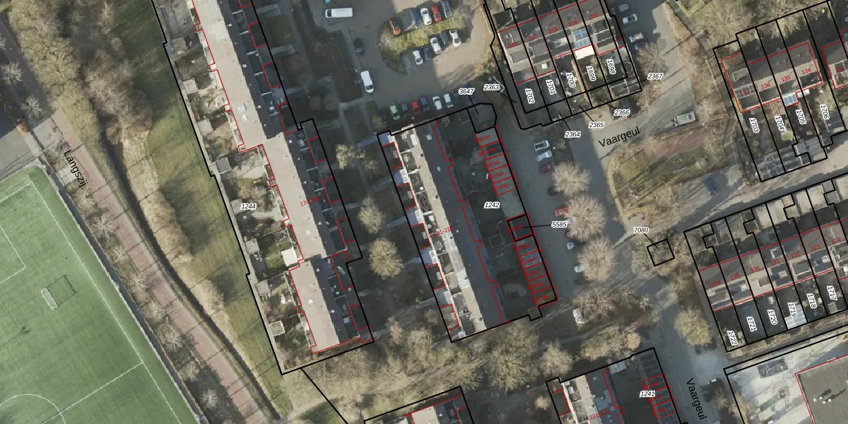 Vaargeul 201 is gelegen op kadastraal perceel GNG01AC1242. Deze kadastrale aanduiding is uniek en wordt gebruikt door het Kadaster om eigendomsrechten en andere zakelijke rechten vast te leggen. Het perceel maakt onderdeel uit van de kadastrale gemeente Groningen.