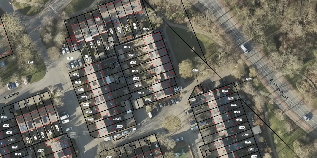 Vaargeul 21 is gelegen op kadastraal perceel GNG01AC1517. Deze kadastrale aanduiding is uniek en wordt gebruikt door het Kadaster om eigendomsrechten en andere zakelijke rechten vast te leggen. Het perceel maakt onderdeel uit van de kadastrale gemeente Groningen.