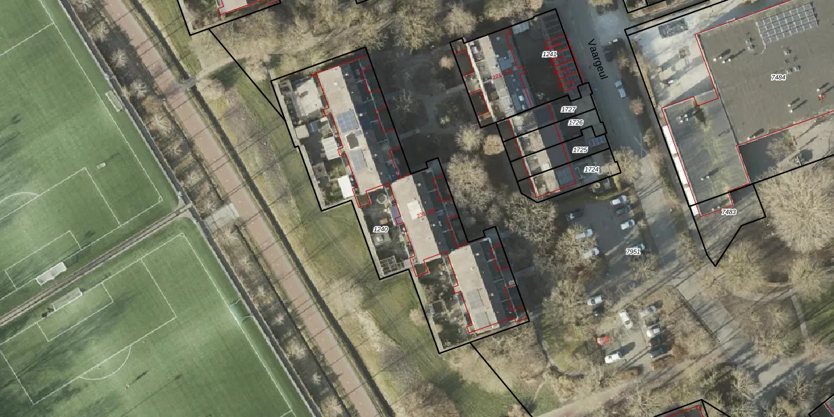 Het perceel waarop Vaargeul 238 staat heeft een oppervlakte van 1777 m². Dit is een zeer groot perceel. De perceeloppervlakte wordt geregistreerd door het Kadaster. Gedetailleerde informatie over de maten van dit perceel kunt u vinden in het rapport Kadastrale kaart met maatvoering van Vaargeul 238.